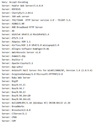Many of these devices have an unusual marker in the server header. If you want to take a look yourself at many of these types of devices, here’s a simple Shodan query to reveal the hosts using that specific project: https://www.shodan.io/search?query=Rm9yIGludGVnZXJzLCB0aGVyZSBpcyB1bmlmb3JtIHNlbGVjdGlvbiBmcm9tIGEgcmFuZ2UuIEZvciBzZXF1ZQ%3D%3D.